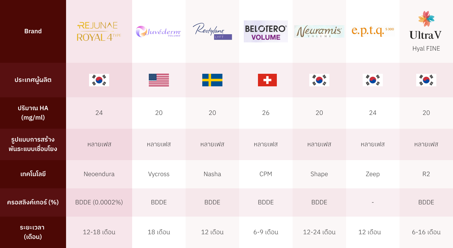 ฟิลเลอร์ Rejunae Royal (เรจูเน่ รอยัล) ผลิตขึ้นโดยใช้ฟิลเลอร์ไฮยาลูโรนิกแอซิดคุณภาพเยี่ยมผ่านกระบวนการผลิตขั้นสูง ซึ่งช่วยให้มั่นใจได้ว่าผลิตภัณฑ์จะมีคุณภาพสูง ทนทาน และให้ผลลัพธ์ที่สม่ำเสมอ